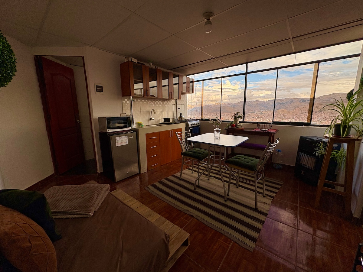 Cute Apartment with a beautiful view of Cusco. Located in the traditional neighborhood of San Blas,it's an ideal spot for couple-family. Righ here family-friendly activities, nightlife, interesting museums,lovely churches.We're just 10 min from the main square. You’ll love our space due to location, the comfy bed, the coziness,amazing view,home feeling.We can offer you AIRPORT PICKUP & TRANSFER,besides we also count with a reliable TRAVEL AGENCY with professional staff