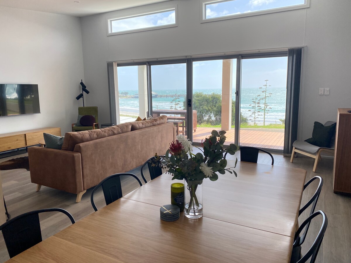 This newly built property was carefully designed as a holiday home that is sure to impress. Wake up to beautiful views overlooking Penneshaw Beach and Frenchman's Rock. The open plan living, kitchen and dining and extensive decking all enjoy stunning views. This fully equipped holiday home sleeps up to eleven guests. Save on the ferry by leaving your car in Cape Jervis, we are only a 10 minute walk from the Sealink terminal, shops, pub, bottle'o, cafes, takeaway shops, and car rental services.