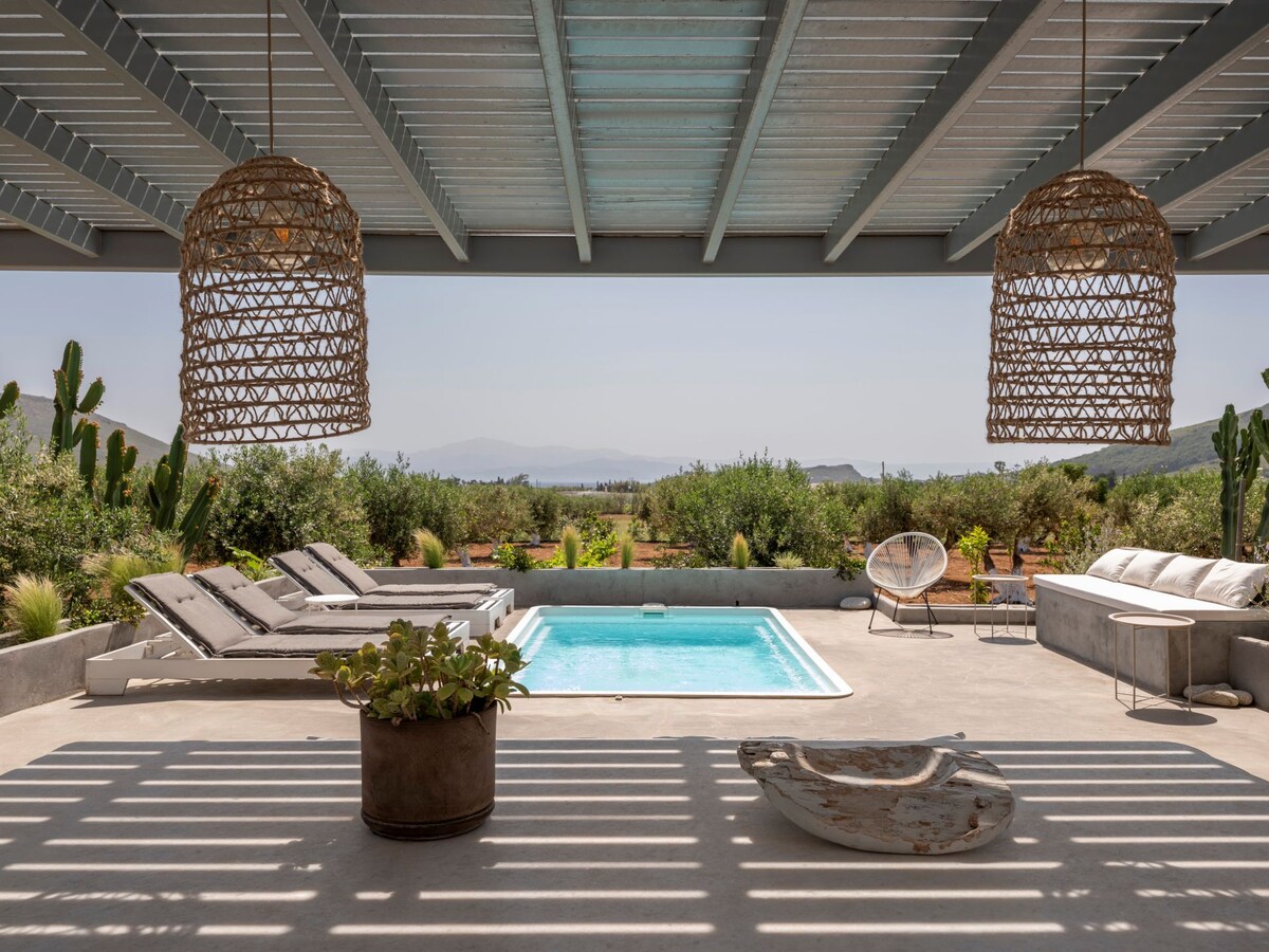 Parikia (əsas şəhər) və Pounda (Antiparosa bərə) yaxınlığında yerləşən bu 180 kv. m. (1,940 kv. metr) villa heyrətamiz dağ və dəniz mənzərələri təklif edir. Parikadan 3 km məsafədə yerləşən sakit kənd təsərrüfatı ərazisində geniş açıq hava sahələri və böyük üzgüçülük hovuzu ilə ümumi məxfiliyi təmin edir. Gizli yol qumlu Parasporos Çimərliyinə aparır. Sahibi tərəfindən düşünülmüş şəkildə bəzədilmiş villa sakit istirahət yeri yaratmaq üçün ənənəvi elementlər, təbii materiallar və sakitləşdirici tonlarla Fenq Şui prinsiplərini birləşdirir.