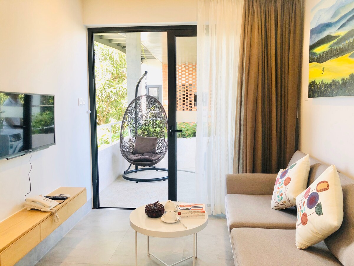 🌿 Hovuzkənarı Bir Otaqlı Mənzil — Çimərliyə 5 Dəqiqə Tıxac deyil, suların səsinə oyanın. Ayrıca balkonunuza, əlinizdə qəhvəyə doğru addımlayın və parıldayan üzgüçülük hovuzuna və yamyaşıl tropik bağa baxın. Cəmi 5 dəqiqəlik gəzinti və ayaqlarınız My Xhe Beach-in dünyaca məşhur ağ qumlarındadır. Bu, sadəcə tətil icarəsi deyil - bu, xəyal etdiyiniz asan çimərlik həyat tərzidir.