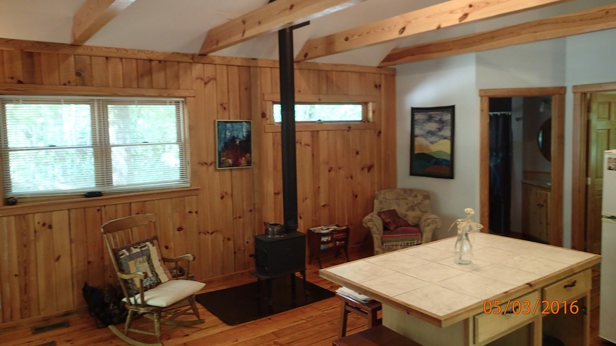 İNDİ WIFI TƏQDİM EDİRİK Meşədə yerləşən bu sakit kottecdə bütün ailə ilə təbiətə qayıdın. Eyvanlı verandada dincəlin, açıq havada qril edin və ya od çuxurunda (odun verilir) zefir qızardın. Dağ dəfnəsi ilə dolu 7 hektarlıq meşəlik ərazini araşdırın və ya yolun aşağısındakı yerli balıqçılıq gölünə gedin (qamışlar təmin edilir, öz yem və avadanlığınızı gətirin). Oyunlar, bulmacalar, "cornhole" oyunu və DVD-lər təmin edilir.