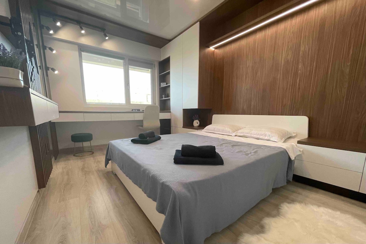 Nova • Your Urban Refuge in a Premium Complex Prime location – nestled in a green, open, and quiet area with quick access to the city center, airport, and main roads. Just a few steps away, you’ll find supermarkets, cozy cafes, fitness centers, and stylish restaurants – everything you need without leaving the neighborhood. Contemporary design & maximum comfort – a bright, tastefully decorated space, perfect for relaxing or working. Every detail has been carefully designed for your comfort.