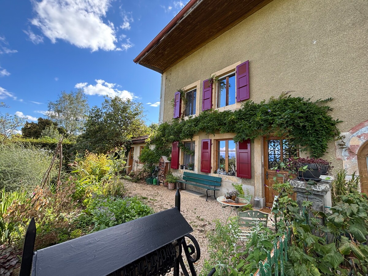 A seulement 15 minutes de Lausanne, 30 de Montreux (Riviera) ou des Paccots, 1h de Champéry et 1 heure 15 de Verbier, dans la commune de Corcelles le Jorat, nous vous accueillons dans une charmante dépendance entièrement restaurée en 2016, avec vue magnifique sur les Alpes Fribourgeoises. C'est aujourd'hui un gite de charme d'une surface d'environ 55m2, très confortable, décoré avec goût pouvant accueillir jusqu'à 4 personnes. Nous vous accueillerons en français, en allemand, ou en anglais.