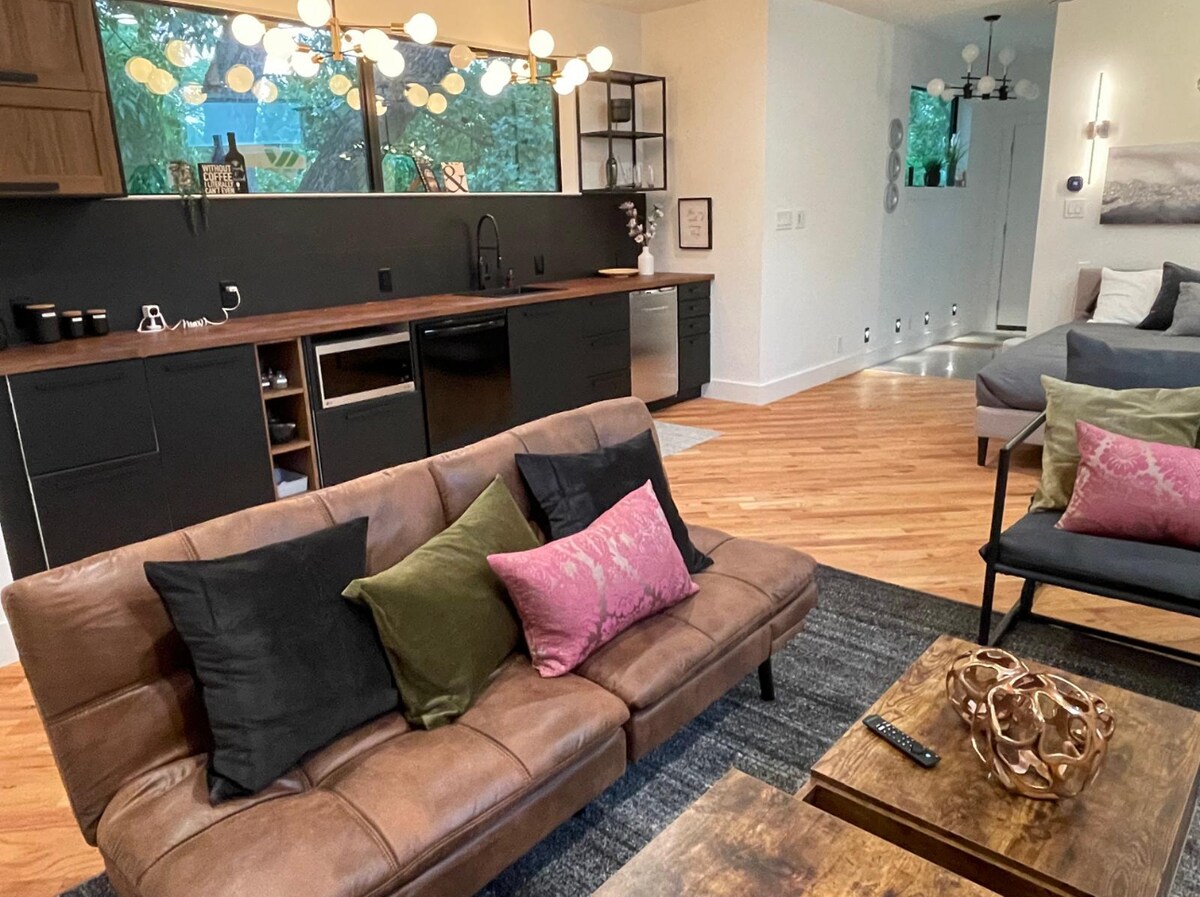 Enjoy a stylish experience at this centrally located place. Stay in our brand-new Studio with European designer influences. Modern architecture, lots of natural light, very peaceful and centrally located. My place is 5min from Bishop Arts District, 12min from Lower Greenville and 10min from Deep Ellum, 8min from Downtown. The kitchen has an Air-Fryer and a portable induction cooktop for the countertop (single burner, please see pictures)