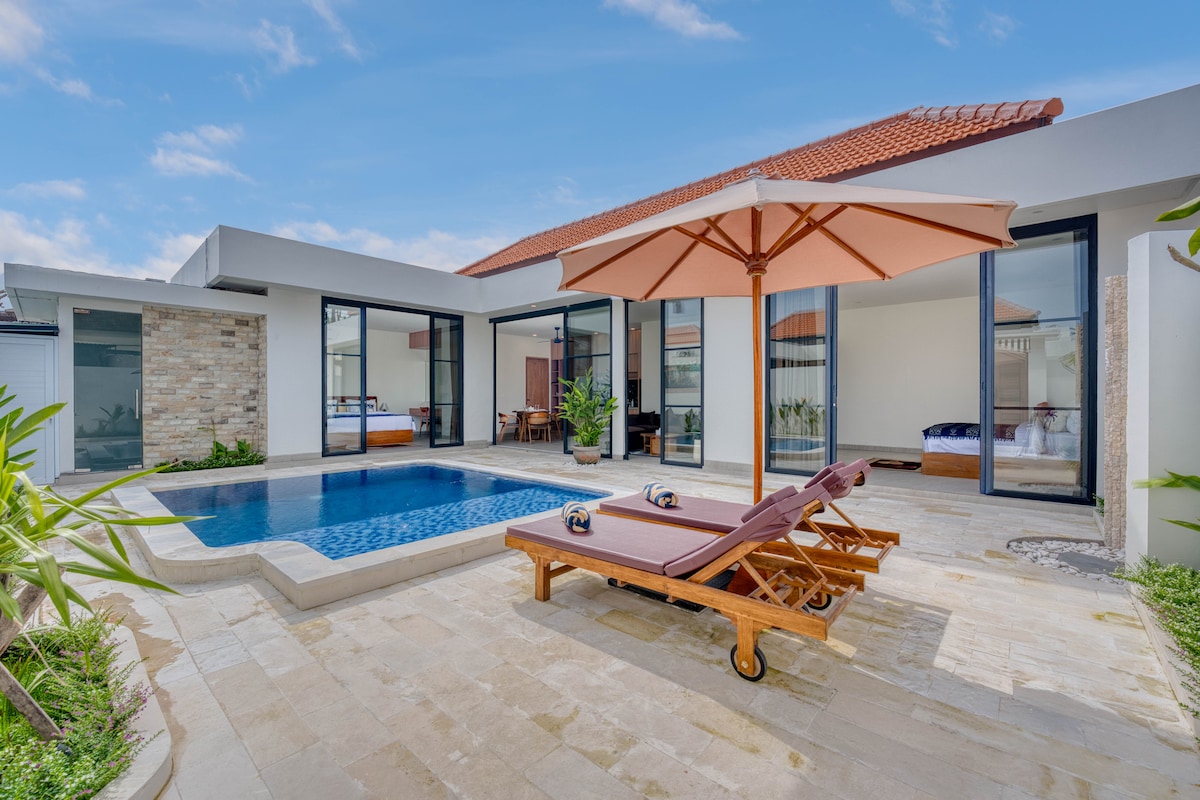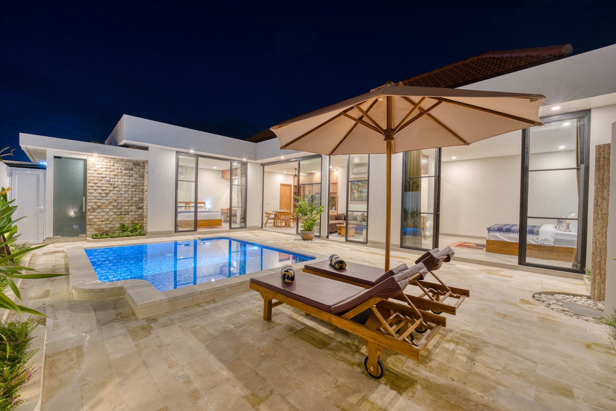 Tempat menginap bergaya ini cocok untuk perjalanan grup.kompleks vila yang terletak strategis di kawasan Umalas/Canggu, menawarkan akomodasi pribadi dengan fasilitas dapur lengkap, taman, dan kolam renang outdoor. Vila ini cocok untuk keluarga atau kelompok, menyediakan kenyamanan seperti Wi-Fi gratis, AC, dan layanan seperti antar-jemput bandara dan laundry, dekat dengan Pantai Berawa dan Seminyak.