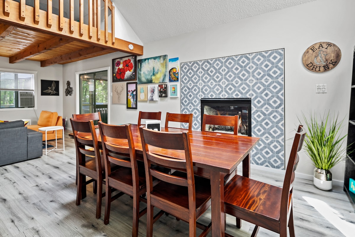 CASA AURORA: Masthope-da yerləşən, hər fəsildə sonsuz imkanları olan Poconos incisi olan, eklektik və rəngarəng 3 yataq otağı/2 hamamlı, od çuxuru olan kabinəmizə qaçın! Bu qış xizək sürməkdən və tyubinqdən zövq alın! Masthope çimərliyində pulsuz SUP/kayak icarəsi ilə yay günləri. Masthope-da 2 açıq hovuz, Tikibar, qril, at sürmə, zoopark, kortlar, mini-qolf, idman zalı var. Yenilənmiş evdə hidromasajlı vannası, qaz ocağı, qaz qril, pəncərəsi olan eyvan, terras və od çuxuru var. Yay əyləncəsi və ya qış macərası üçün mükəmməldir - Ski Big Bear 5 dəqiqəlik məsafədədir!
