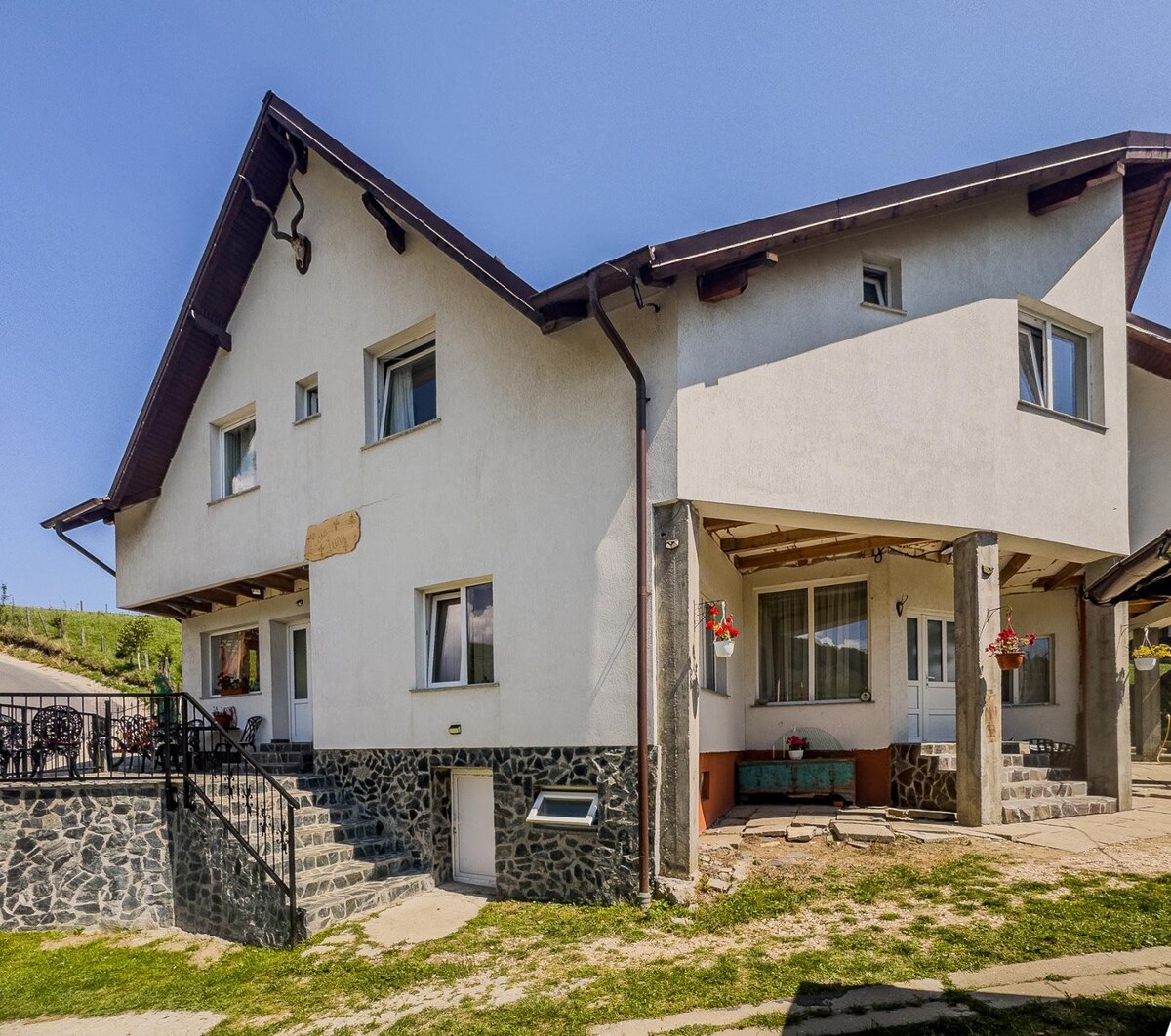 An exquisite location, best in the Rucar-Bran area. The house is situated on a plateau which gives it spectacular views all around. The views include the two massive mountains Bucegi and Piatra Craiului. The place has privacy and tranquility, the perfect spot for relaxing. It is cozy and peaceful with everything one would need. If you’re into the mountain house lifestyle with board games/tv, a glass of wine by the fireplace, this place suits you. It is also very close to Bran Castle.