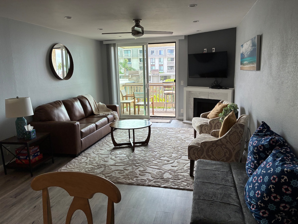 Patio on the Pacific has beautiful ocean views from the living room, master bedroom, and balcony. On a nice day in Oceanside, you can enjoy the sailboats going by on the Pacific from the couch! To relax and recharge, use the buildings pools and spas or enjoy the 5 min walk to the beach + strand. Enjoy working here with 200mbps Internet and a dedicated desk in the bedroom. Our condo is a corner unit on the top floor (accessible via elevator) of building G in the North Coast Village.