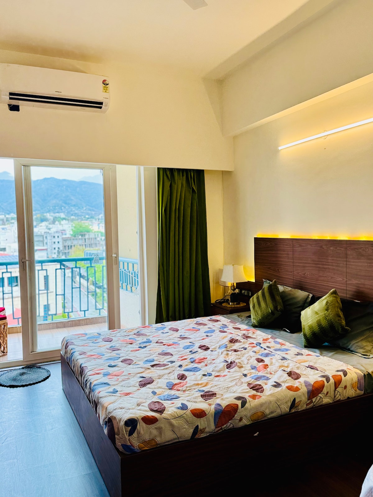 Luxury 3BHK apartment in Dehradun with breathtaking scenic mountain views from a private balcony. Ideal for families or groups of up to 7 guests, the home offers fast Wi-Fi, covered parking, lift access, and top-notch cleanliness. Enjoy spacious bedrooms, modern interiors, and premium amenities in a peaceful neighbourhood close to cafes, markets, and a short drive to Mussoorie. Sahastradhara natural springs -8 km Maldevta picnic spot -9 km Mussoorie -30 km Landour -34 km