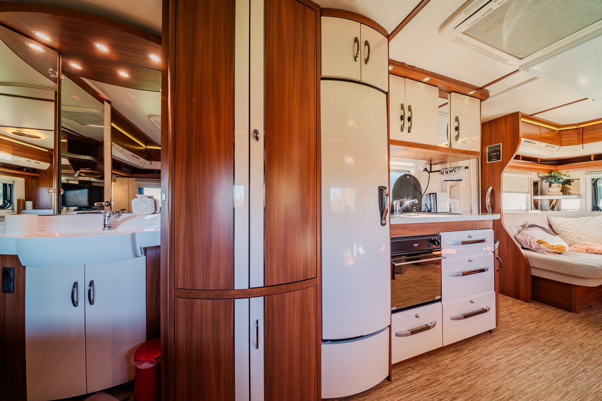 Gemütlicher, umgebauter Bus mit Weltreiseflair