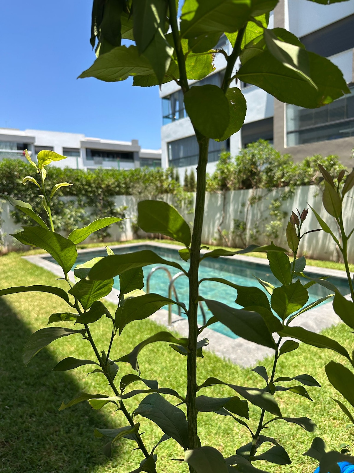 Modern 80 sqm loft with a 40 sqm private garden, rare in South Casablanca, away from the noise of the city center. Fun&Zen ambiance with a dedicated workspace, massage mat, BBQ, and a space designed for relaxation. Optimal comfort with high-speed fiber internet, Netflix, relaxation games, and free parking. Just steps from the BusWay and public transport, about 10 minutes from shopping malls, CFC, and Cheikh Khalifa Hospital. City center is 30 minutes away.