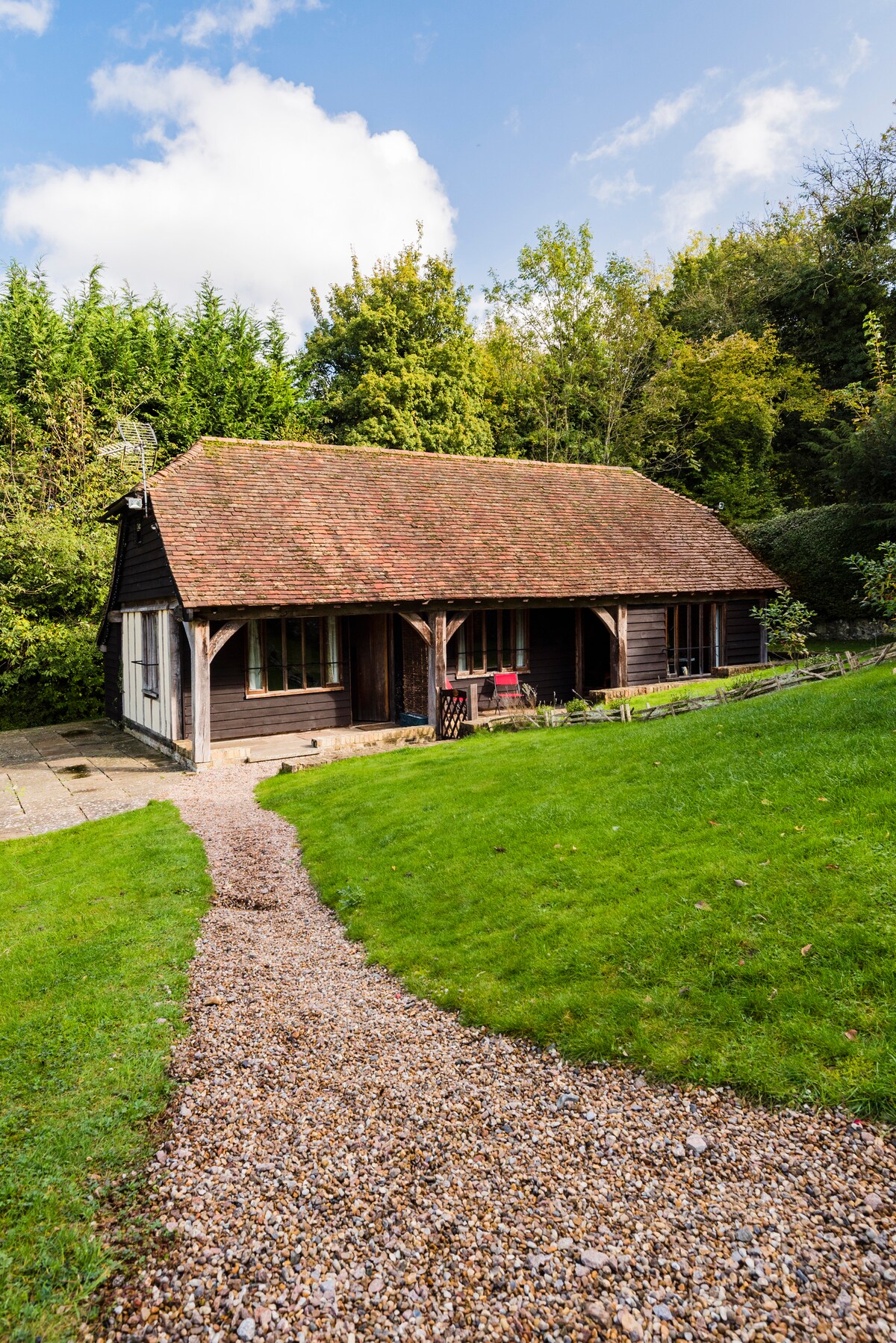 Zeytun ağacından tikilmiş, müstəqil, müasir memar tərəfindən dizayn edilmiş bu samanlıq, gözəl AONB kəndi ilə əhatə olunmuş, möhtəşəm mənzərələri olan, cütlüklər üçün lüks bir istirahət yeridir. İtlərlə gələ bilərsiniz. Bir çox məşhur ev və bağların, Sissinghurst Qəsri, Great Dixter, Chartwell, Batemans və Scotney Qəsrinin yaxınlığında. Royal Tanbric Uells Spa şəhəri 20 dəqiqəlik məsafədədir. Ən yaxın kəndimiz olan Uodherstdə 2 kiçik supermarket, əla qəssab, delikates, 2 pab və paket xidmətləri var.