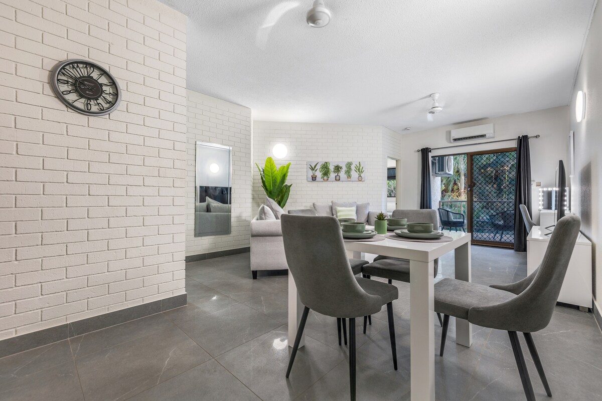 Hugo’s Hideaway is a freshly renovated two bedroom, two bathroom apartment located in a small complex in the heart of Larrakeyah adjacent to the CBD. The apartment enjoys complete privacy and is surrounded by lush tropical gardens. Everything in the apartment is brand new including bedding, linen, appliances & furniture. High speed NBN internet, Netflix & a Nespresso pod coffee machine are included & ready for you to enjoy throughout your stay. There is a dedicated parking space.