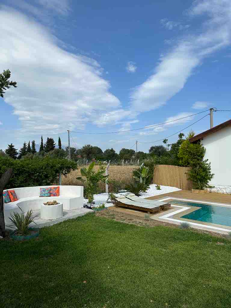 Ayrıca, hovuzu, böyük bağı olan taxta Aralıq dənizi evi
