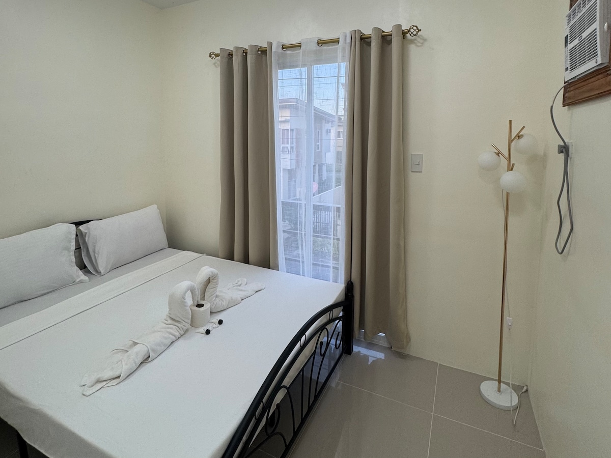 Relax with the whole family at this peaceful villa to stay + Gated and secured house with a caretaker on the side + Free use of pool for all registered guests + KING bed in Master's bedroom + Elegant and modern room designs + Konzert Karaoke system free + Peaceful + 200mbps net - 12 min ride to the airport - 18 min ride to the seaport - 20 minutes ride to Alona beach. - Grab is unreliable - Scooter or Car rental is a MUST - Use your own NETFLIX - No backup generator - 200m limestone paved road