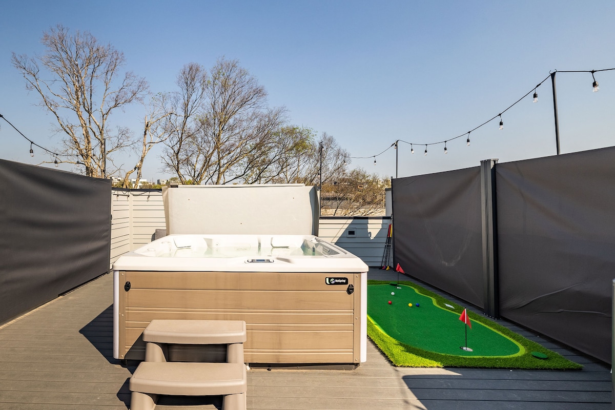Cozy Home w/ shared rooftop near restaurants, concert venues, bars & cafés! Come enjoy the murals & theater! ✨ 13 min to Broadway & Airport ✨ 6 min to Opryland 🎥 100" Theater Screen 🎨 Instaworthy Murals 🎲 Board Games + Foldout Table & Chairs 🎯 Shared Game Room 🪵 Firepit & Cornhole 🛏️ 3 Beds/3 Baths + Patio 🧺 Washer & Dryer 🎞️ Disney+/Hulu/ESPN+ 🍽️ Full Kitchen - Keurig, Air Fryer, etc 📺 3 Smart TVs 📶 Fast WiFi 💄 Makeup Desk & Wall Mirrors 💨 Pedestal Fans ♿ Accessible Layout