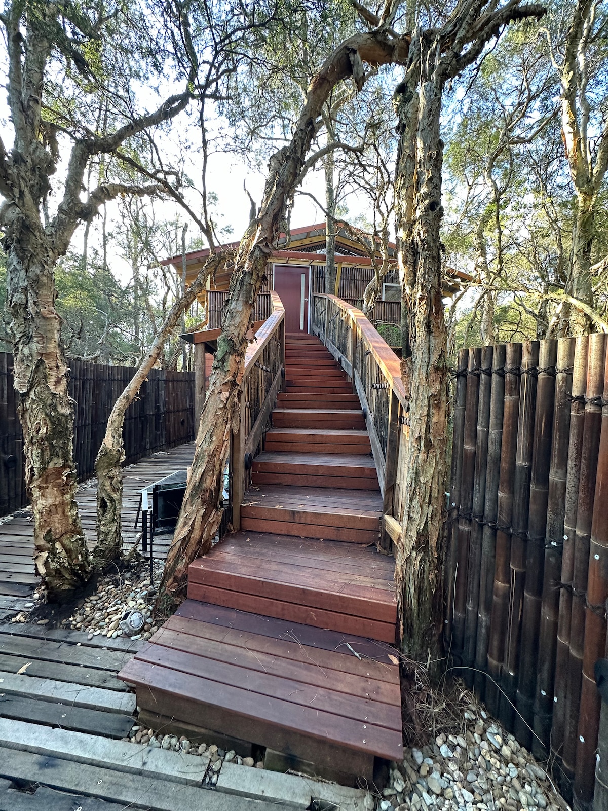 Bağ studiyası evin birinci mərtəbəsindədir, o, yetkin ağaclar və yamyaşıl bitkilərlə əhatə olunub. Woy Woy, yerli kafe və ümumi mağaza bərə ilə ictimai wharf bir neçə dəqiqəlik məsafədə yerləşir; gözəl Bouddi sahil gəzintisinə, restoranlara və mağazalara bir neçə dəqiqəlik məsafədə. Ayrıca girişi olan ayrıca məkanınızdan zövq alacaqsınız. Mehriban toyuqlar və pişik sizə ziyarət ödəyə bilər. Qonaqlamanız zamanı pianoda ifa etməkdən və ya velosipedlərimizi götürməkdən çəkinməyin. 12 yaşdan kiçik uşaqlar üçün uyğun deyil.