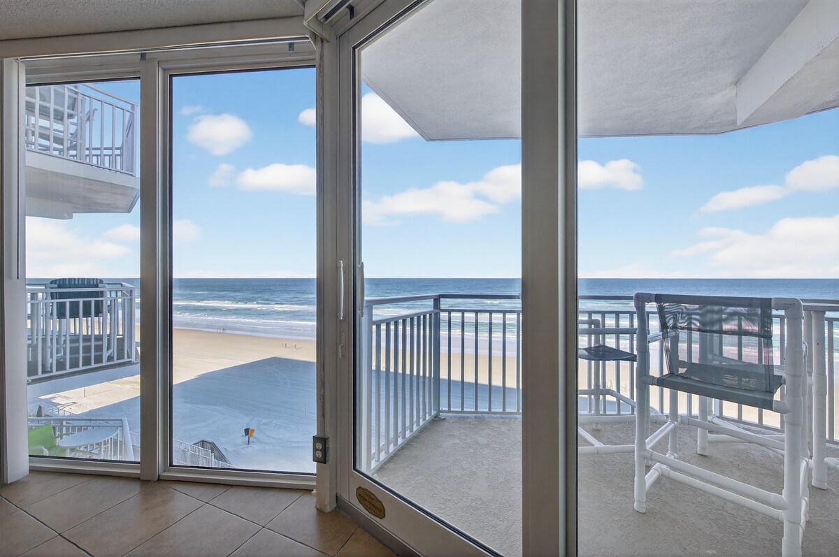 Bu dəbdəbəli çimərlikdə yerləşən kondominiumda sudan cəmi bir neçə dəqiqəlik məsafədə rahat tətildən zövq alın. Bu 2 yataq otaqlı, 2 vanna otağı olan kondominiumla bütün ailə gözəl Daytona-Biç sahil xəttindən zövq ala bilər. Kondominium döşəmədən tavana qədər pəncərələrə malikdir, maneəsiz çimərlik mənzərəsi və tonlarla təbii işıq təklif edir. İçəridə qalın və ümumi otaqda suya baxaraq dincəlin və ya hovuz və cakuzidə istirahət etmək üçün bayıra çıxın. Erkən oyanın və ya çimərlikdən, ya da bu kondominium rahatlığından günəşin doğmasına baxın.