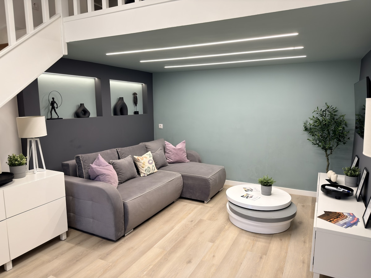 Modern, légkondicionált apartmanunk a belvárosban található. A galérián kényelmes franciaágy, a csöppségeknek teljes babafelszerelés vár. Hogy a pihenés felhőtlen legyen, nálunk a kávé és a tea is a vendéglátás része, emellett az alapvető tisztálkodási eszközökről is gondoskodunk. Barátságos hangulat, szupergyors internet, TV, mosó- és szárítógép, ingyenes parkoló a bejárat mellett: minden adott a kényelmes tartózkodáshoz. Fedezd fel a várost, majd pihenj nálunk egy igazán nyugodt környezetben.