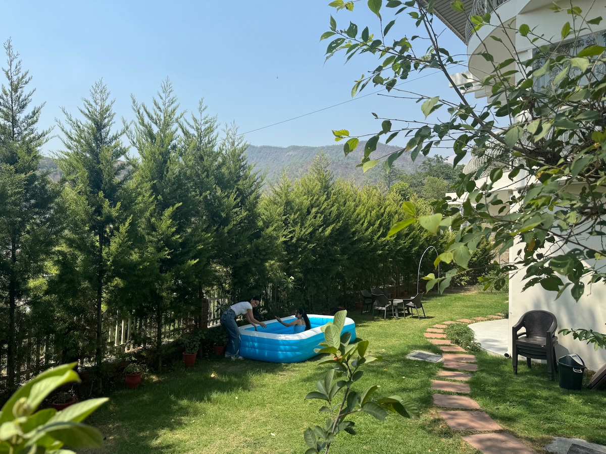 Welcome to Bella Casa, a beautiful 3BHK Villa with spacious rooms & mountain, just 15 minutes drive from the lively Rajpur Road, Dehradun. We offer 3 Bedrooms with En-Suite washrooms, Multiple Gardens, Balcony and a Rooftop. Whether you're in the pool tube, playing indoor and outdoors, or watching a movie under the stars, Bella Casa offers silence in the lap of nature. Within 15 minutes, you can reach rivers, scenic drives, or quiet moments by the water or the lively Rajpur Road.