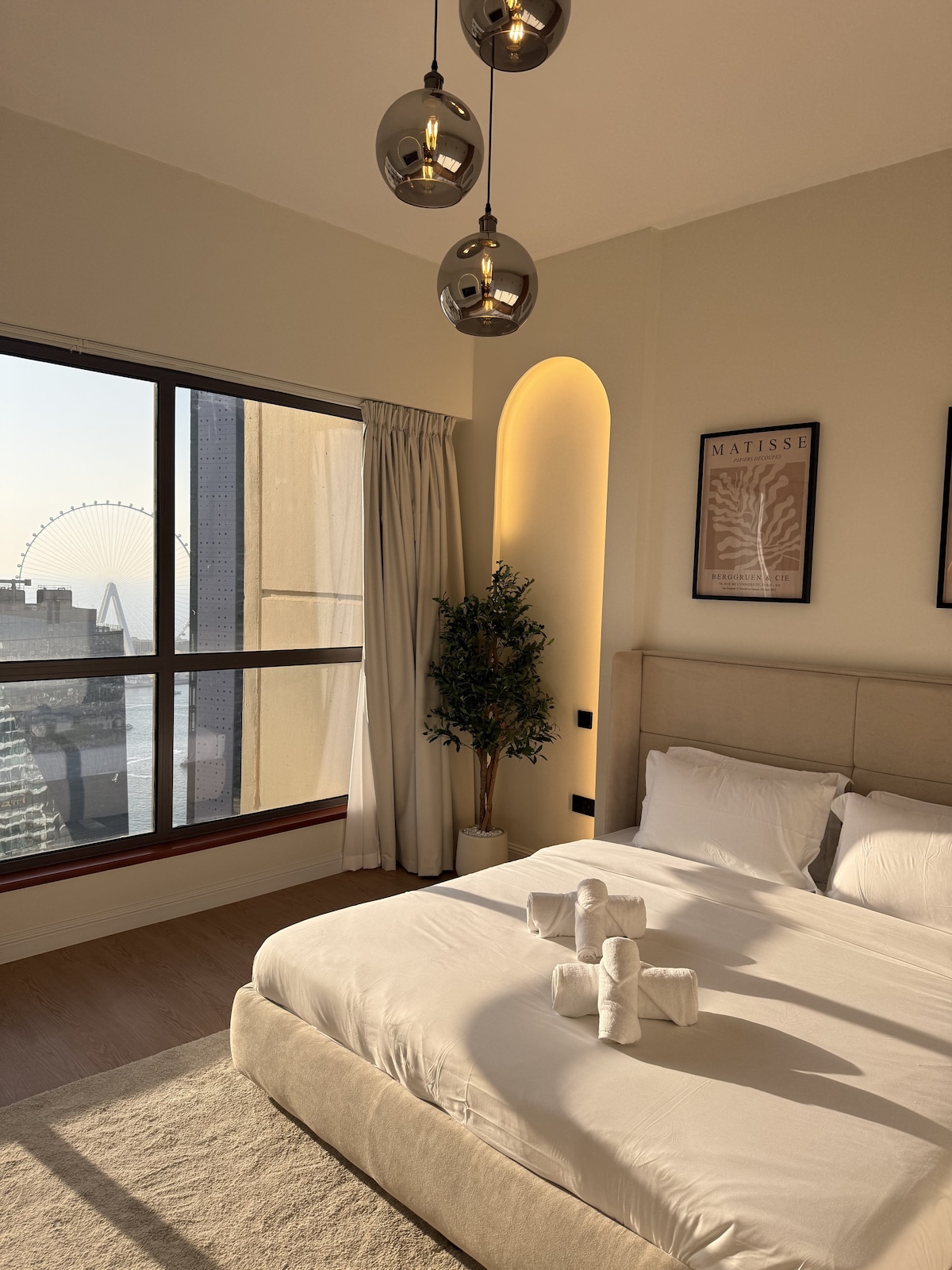 Lüks Yüksək Mərtəbəli 1BHK | Burc və Kanal Mənzərələri