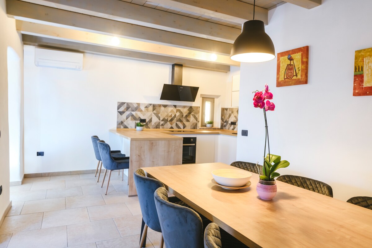 The house is situated in a charming istrian village Dekani, close to the sea site and the old city center of Koper (10 km). The house is newly renovated in old istrian stile and with a marvelous sea view. The kitchen is fully equipped. You can also visit our wine cellar and old mill and have a taste of our wines. The location is also great for visiting Italy (Triest 15 km, Venice 160 km), the caves (Škocjanske – 30 km, Postonjske – 50 km), the capital Ljubljana (100 km) and Croatia (25 km).