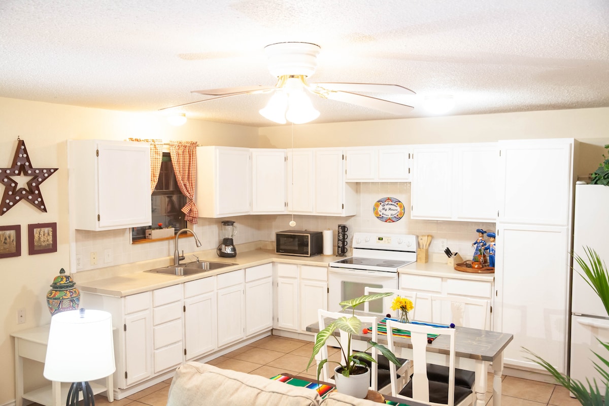 Welcome to Frank's Casita Blanca, Your Home Away from Home in Del Rio! Tucked on a quiet corner in the heart of Del Rio, Franks Casita Blanca is a charming & cozy 2-bedroom retreat designed for comfort & relaxation. Whether you're in town for work, visiting family, or exploring the border town's unique charm, you'll love the peaceful vibe & central location - just minutes from local shops, restaurants, & attractions. Inside you'll find a thoughtfully furnished space with all the essentials.