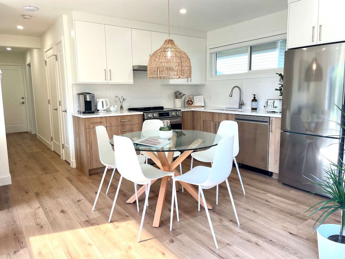 Nestled in a quiet residential neighborhood in the historic Ladner, BC, this one bedroom self-contained guest suite offers a great base to explore Greater Vancouver and all it has to offer. Newly renovated and features high speed Wifi, smart TV, fully equipped kitchen, laundry and more making this a great choice for your next stay. Plenty of natural light, vaulted high ceilings and strategically placed wall art make this suite perfect for remote work.