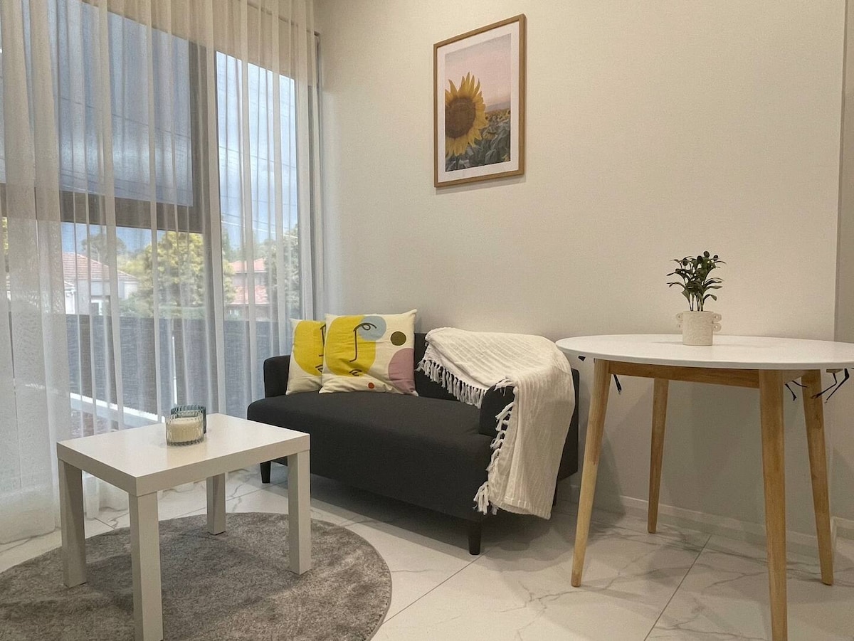 Best location in the heart of Top Ryde - Comfortably sleeps 4 people! - Full Kitchen, Laundry and appliances - 5 min walk to Top Ryde Shopping Centre & Restaurants - 5 min walk to Cinema, arcade and mini golf - 2 min walk to bus stops - Around 7 - 10 min drive to Macquarie Park, Rhodes - 13 min drive to Sydney Olympic Park - FREE SECURE PARKING - Portable cot, changing table and baby bath available at request Airport transfer available at discounted rate if required
