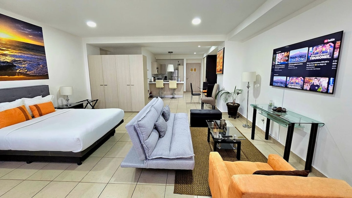 Bu, çox yüksək kərpic tavanlı 57 kvadrat metrlik mənzil, böyük qonaq otağı və çox işıqlı yemək otağıdır. Orijinal qəşəng orta əsr mebelləri və bir neçə sənət əsəri tapın. Mənzildə kraliça böyüklüyündə çarpayı, dolab və hamam otağı və ayrıca mətbəxi olan ayrıca yataq otağı var. Həmçinin işıq və havalandırma üçün iki kiçik daxili verandası var. Bərpa zamanı 1940-cı ilə aid bir çox orijinal memarlıq detalları, kərpic divarlar, tavan və pəncərə çərçivələri qorundu. Layihə bu yaxınlarda Architectural Digest Mexico-da nümayiş etdirildi və bir neçə mühüm memarlıq mükafatı qazandı: Memarlıq Masterprize və NoldiSchreck. Qonaq bütün mənzildən istifadə edə bilər. Həmçinin kondominiumun daxili verandasında və birinci mərtəbə lobbisində vaxt keçirə bilərsiniz. Həmçinin qarajın yanında istifadə edə biləcəyiniz paltaryuyan və quruducu ilə təchiz edilmiş camaşırxana da fəaliyyət göstərir. Santa María La Ribera tarixi 19-cu əsrə aid məhəllədir. Alameda Parkında gəzin, sonra yaxınlıqdakı Museo de Geología-ya baş çəkin. Burada mamont və dinozavr qalıqlarına, üstəlik məşhur meksikalı usta Xose María Velaskonun rəsmlərinə nəzər salın. Metro, metrobus (hava limanına və tarixi mərkəzə birbaşa xətt), qatar, avtobus və ictimai velosiped sistemi (ekobici) daxil olmaqla bir çox ictimai nəqliyyat variantları tapa bilərsiniz. Metrobus Linea 4 norte hava limanından T1 və T2-dən Buenavista və geriyə birbaşa əlaqədir. Təxminən 45 dəq. 30 Pesos/adambaşına, şarj edilə bilən Metrocard lazımdır. Hava limanına və oradan təhlükəsiz, cəld və birbaşa yol.