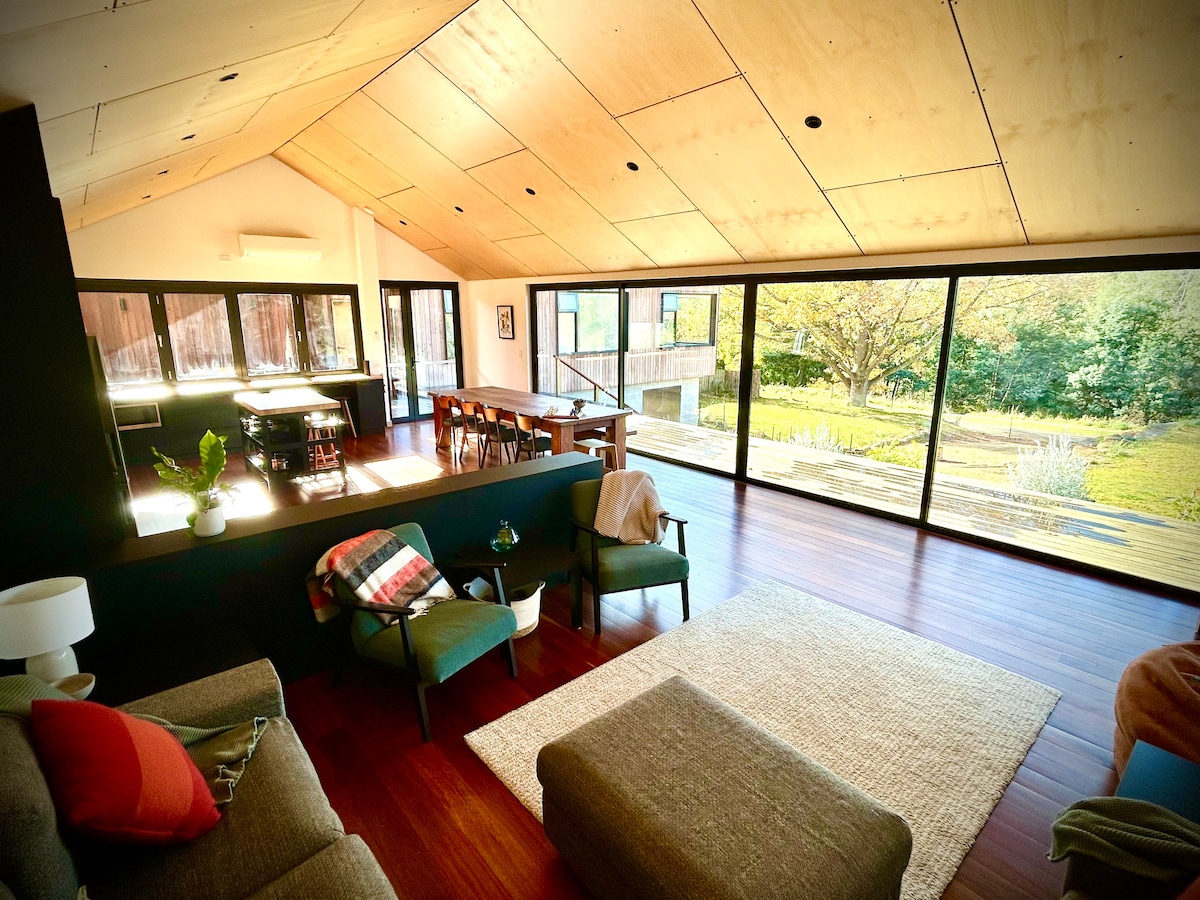 Pulsuz şampan! Bu memarlıq baxımından dizayn edilmiş Barndominium Tasmaniyanın Şimal Şərqində yeni tikilib və bənzərsizdir. Hidronik döşəmə isitmə, kondisioner və super sürətli Wi-Fi ilə bu məkan romantik tətil və ya böyük qrup üçün idealdır. Unikal dizayna uyğun zövqlə bəzədilmiş, köhnə və yeni mebellərin qarışığı həyəcanlanacaq! Şərq aspektində döşəmə və tavan pəncərələri ilə səhər günəşi ilə vadiyə açılan mənzərə heyrətamizdir. Oturacaq sahəsi mezzanin ilə tamamlayın.