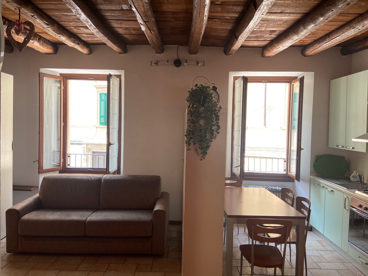 Bellanonun mərkəzində, Komo gölü sahilində yerləşən və göl mənzərəsi olan terrası olan cazibədar tarixi binada mənzil: səhər yeməyi, nahar və nəfəskəsici mənzərə ilə dincəlmək üçün ideal yer. Qonaqlama yerində iki divan, kreslo, yemək masası və yaxşı təchiz olunmuş açıq mətbəx, çarpayı və iki tək çarpayı olan yataq otağı və hamam otağı olan geniş yaşayış sahəsi var. Bütün evdə açıq taxta tirləri olan tavanlar.