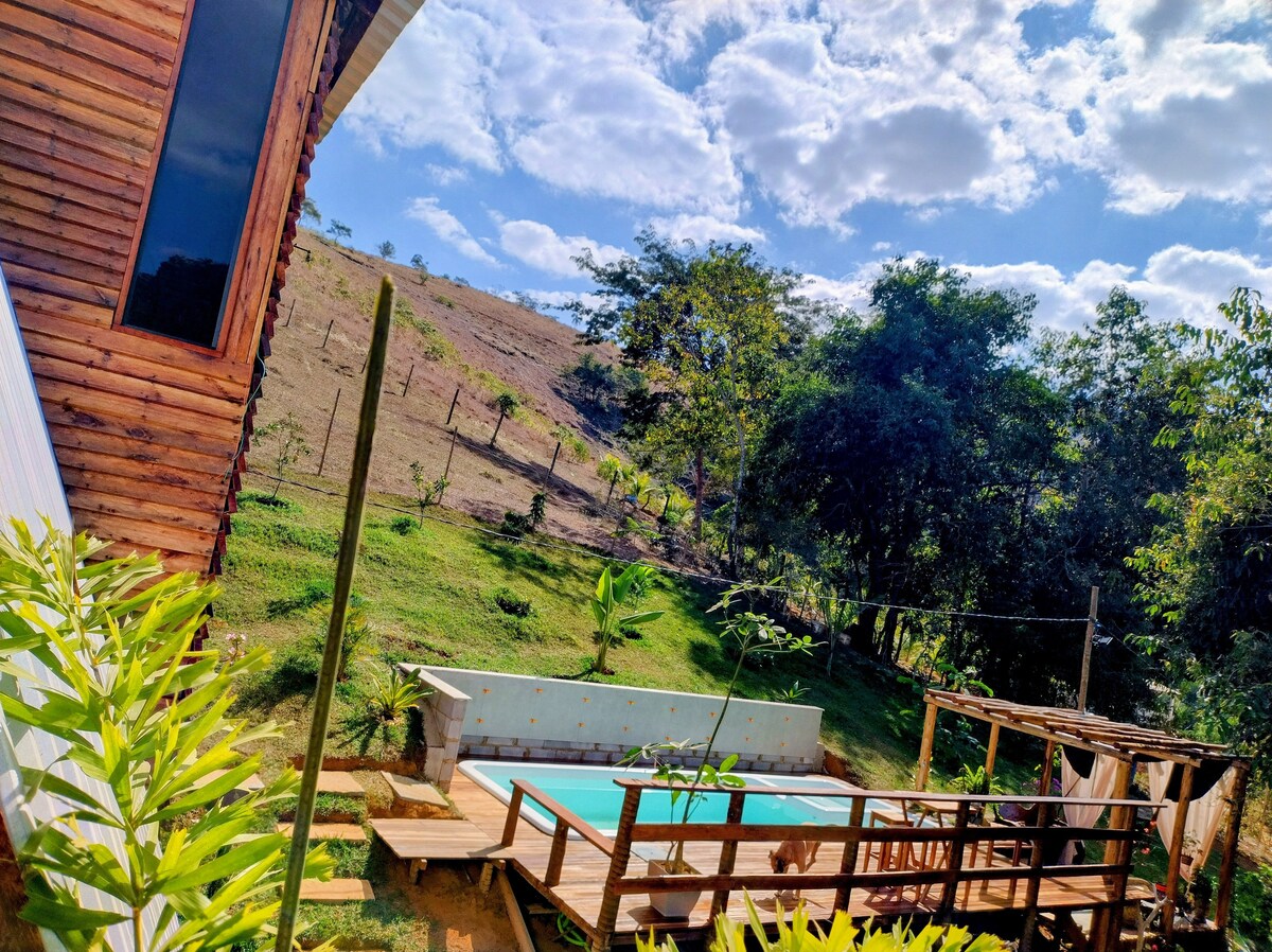 Paz! Evin eyvanı, arxa həyəti, şəlalə mənzərəsi var! Öz-özünə eşitmə, daxili nitq. Unikal hiss! Günəşə və təbiətə Sabahınız xeyir verən quşları dinləyin, mahnı oxuyun! küləkdən, damda yağışdan gələn səs-küy! Mənzərəni seyr edərək səhər yeməyi və nahar yeyin! Yalın ayaqla yerə basın, küləyin üzünüzə vurduğunu hiss edin! Təbiəti mükəmməl harmoniyada görmək çox gözəldir. Enerjiləri canlandırır!!!! Şəlalə piyada təxminən 15 dəqiqəlik məsafədədir. Süd çəninə tökülən başqa bir şəlalə (Do Zé Dias) də var.