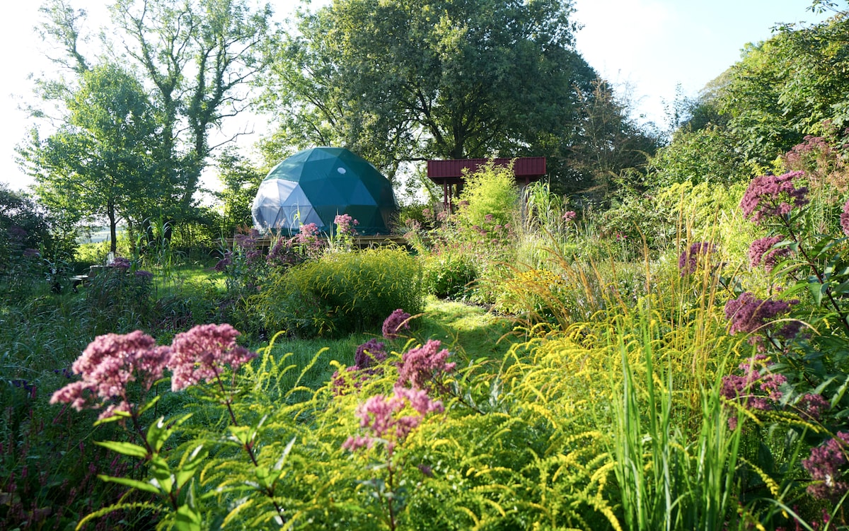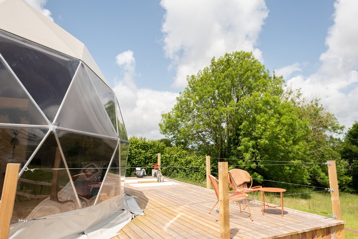 Nestled on our land in the rolling hills of Devon, our spacious Domes offer a peaceful escape for those want to be in nature without sacrificing too much comfort. Enjoy camping with added luxuries, soft low-level lighting, running water, a gas hob, and a full bathroom inside the tent. Set within a seven-acre meadow, our two Domes are perfectly positioned to offer privacy and seclusion, while also being ideal for couples/families wishing to holiday together.
