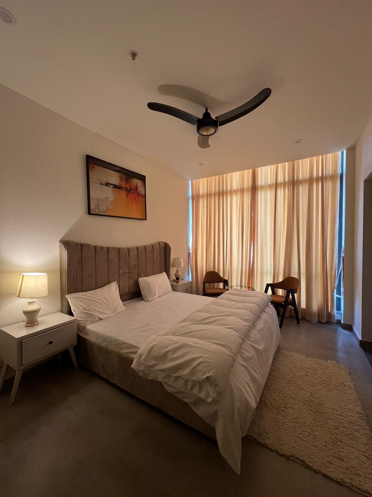 Welcome to your private & peaceful retreat at Sky Park One residences in the heart of Gulberg Islamabad — a sophisticated apartment blending elegance and comfort. Featuring two beautifully styled bedrooms along with a relaxing beautiful lounge, each with its own unique charm, the residence offers an exceptional stay. PLEASE KEEP IN MIND IT IS NOT A HOTEL, IT IS AN APARTMENT YOU ARE RENTING OUT SMOKING IS STRICTLY PROHIBITED INSIDE THE APARTMENT. DOING SO WILL RESULT IN A RS.25000 FINE.