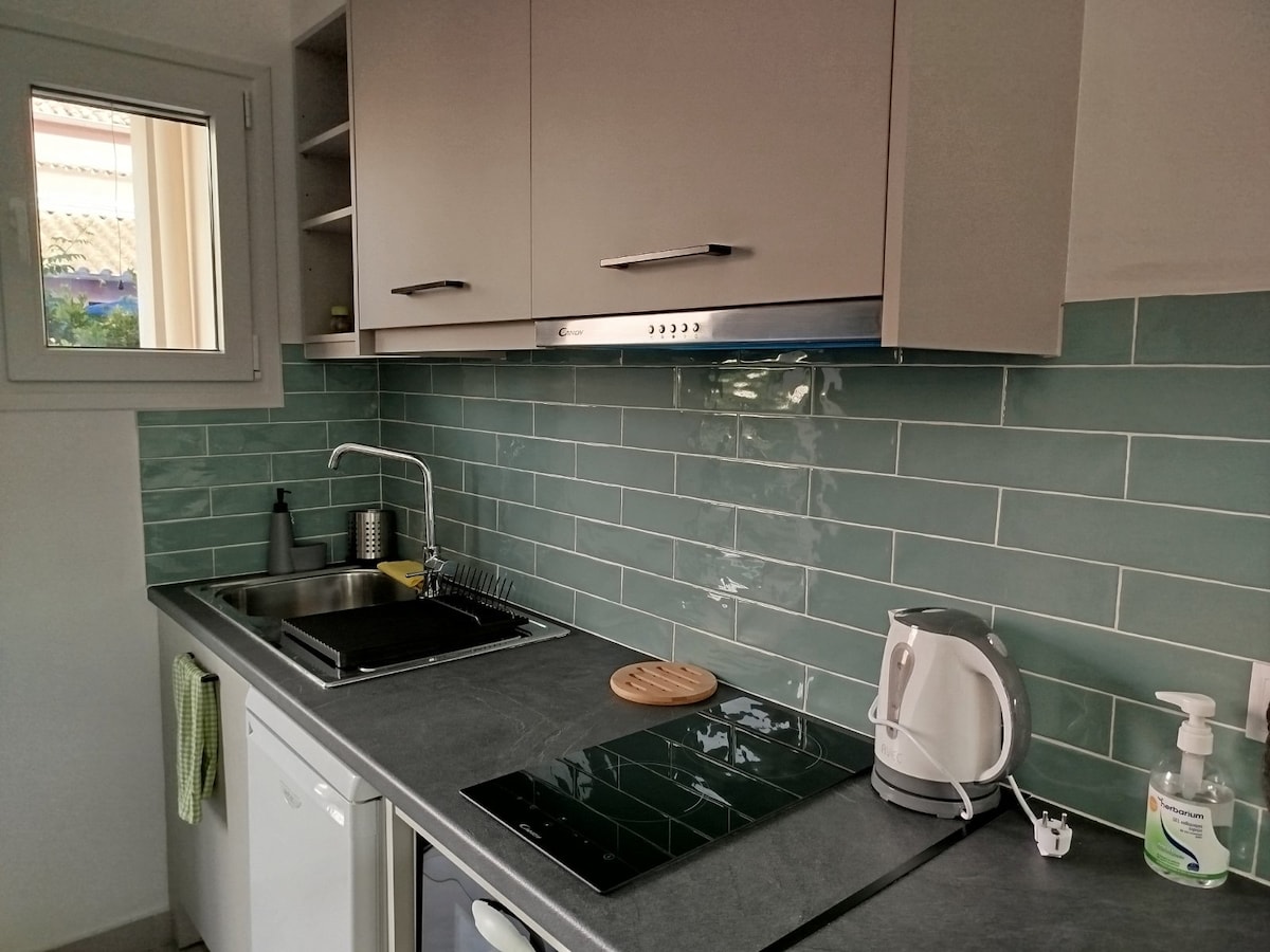 Bu yaxınlarda dənizə və onun heyrətamiz günəş mənzərəsini özündə birləşdirən, rahat atmosferə malik, rahat bir atmosferi birləşdirən inşa edilmiş mənzilə. Mənzili təqdim edərkən, kraliça ölçülü çarpayıya çevrilə bilən böyük bir divan ilə geniş bir qonaq otağı ilə qarşılaşacaqsınız (2 nəfər üçün). Siz həmçinin tam təchiz olunmuş mətbəx tapa bilərsiniz. Otaqlı yataq otağına kral ölçülü çarpayı və dolab daxildir. Bundan əlavə, müasir hamam otağı var.*Həm mətbəxdə, həm də yataq otağının ayrıca eyvanlara çıxışı var və televizor dəstləri və AC var.