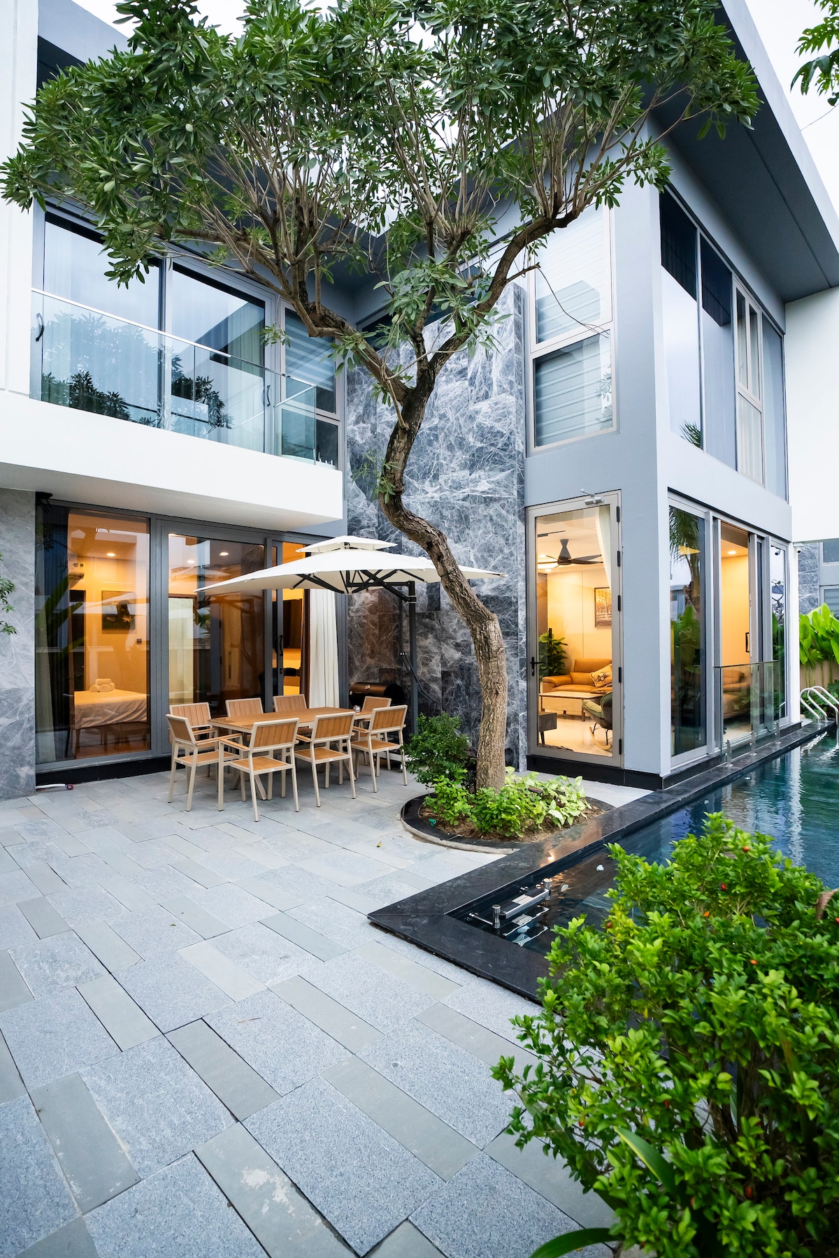 Da Nandakı 5 ulduzlu çimərlik kurortu olan The Ocean Villas-da yerləşən 1000 m²-lik özəl sahilyanı villanıza xoş gəlmişsiniz. Yamyaşıl bağlar və sakit su mənzərələri ilə əhatə olunmuş bu 4 yataq otaqlı, 5 çarpayılı villada ayrıca hovuz, bitişik hamam otaqları və müasir interyerlər var. Resortun çimərliyindən, idman zalından, spa mərkəzindən, tennis kortundan və uşaqlar üçün olan obyektlərdən tam istifadə edin. Sakit, bir-birinə bağlı bir tətil axtaran ailələr və ya qruplar üçün mükəmməldir. ✨ "İstək siyahınıza əlavə edin və Da Nanı sakit istirahətinizdən kəşf edin."