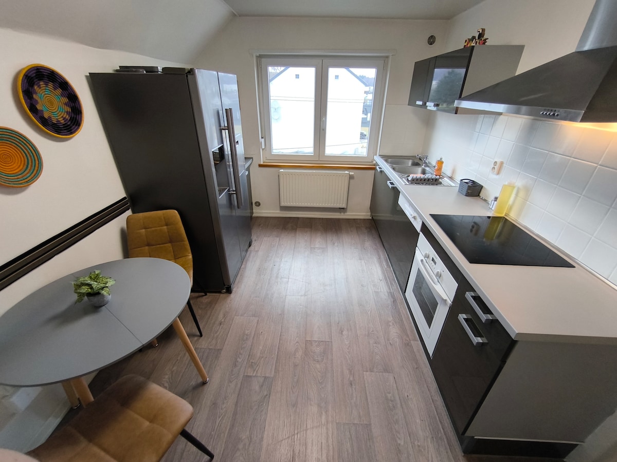 Bütöv məkan. Ayrıca yataq otağı olan, tam təchiz olunmuş, işıqlı və rahat. Mənzil dupleksdir. Birinci mərtəbədə yataq otağı, hamam otağı, eləcə də tualet tapa bilərsiniz. Mətbəx, qonaq və yemək otağı yuxarıdadır. Bir cüt + bir uşaq yatır. Kəndin mərkəzində yerləşir, 50 metr hündürlüyündə çörək zavodu və 100 metrlik orqanik ərzaq mağazası var. 50 metr hündürlükdə kabab qəlyanaltısı. Magistral yoldan 5 dəqiqə, Kreutzvald və ya Sen-Avolddan isə 10 dəqiqə məsafədədir.