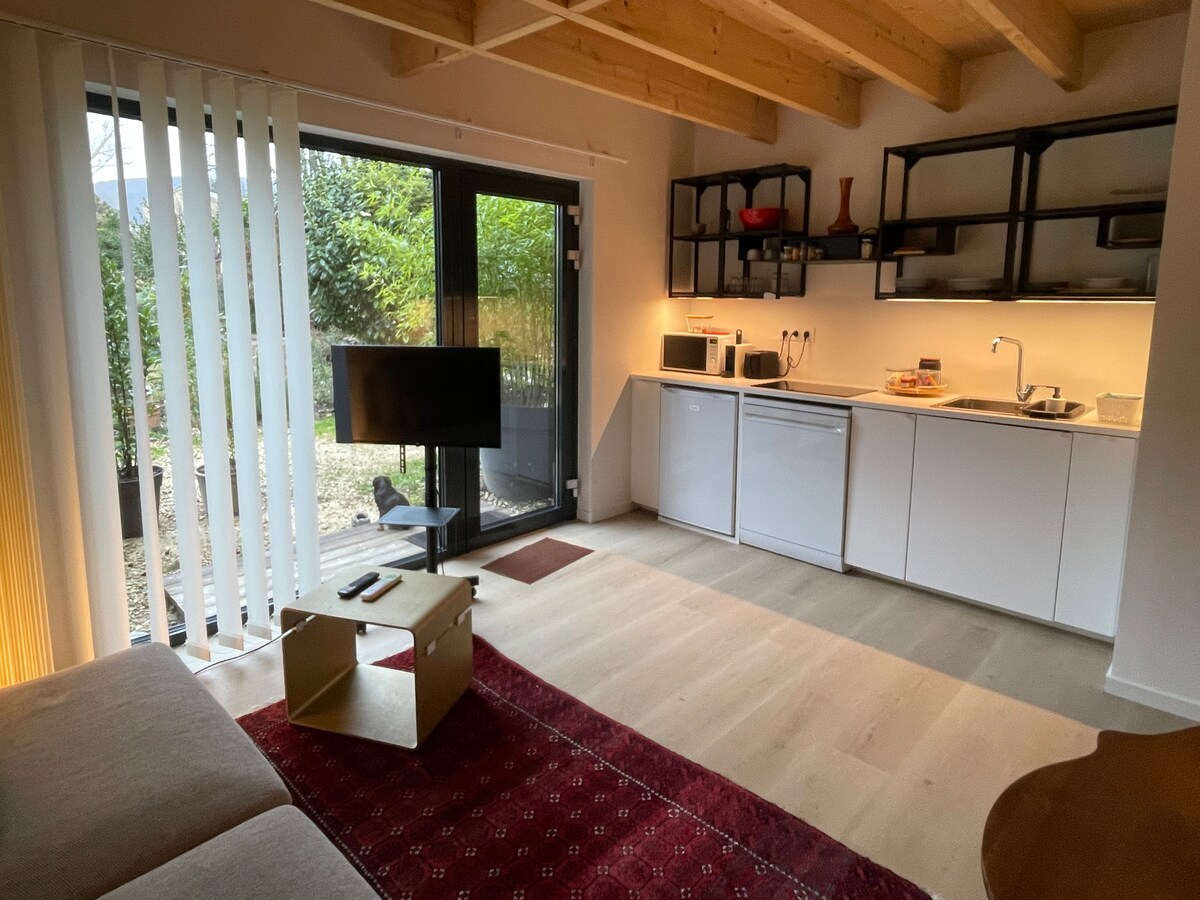 Yaşıllıqlarla əhatə olunmuş, 65 kvadratmetrlik 4 ulduzlu mebellə təchiz edilmiş turizm əmlakı. Şəxsi terrasdan palıd və şam ağaclarından ibarət meşəyə və təpələrə baxmaq olar. 150-179 sm ölçülü çarpayısı (otel keyfiyyəti) və bitişik hamamı olan yataq otağı + 2 tək çarpayılı divanlı qonaq otağına baxan tam təchiz olunmuş açıq mətbəx. Tam imkanlar, ev sahibləri ilə paylaşılan hovuz Qonaqlar istəsə, ərazidəki ən yaxşı yerləri məmnuniyyətlə müzakirə edərik.