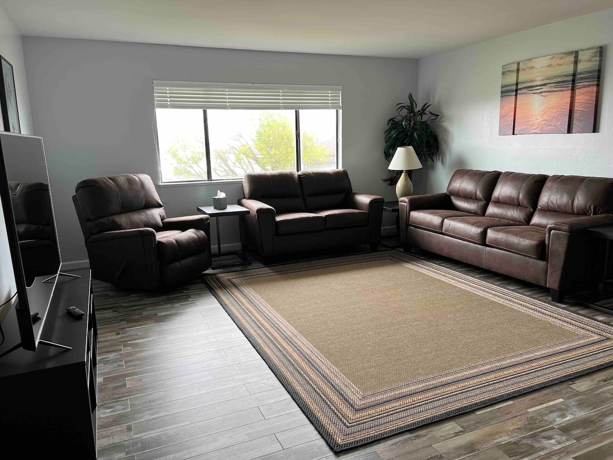 Our home is quiet, relaxing and a 10 minute walk to the beach. There is one bedroom (loft style) with a king size bed and a 2nd bedroom with a queen bed. The couch is a foldout. Bathroom with a tub/shower combo. Full kitchen with a well-stocked spice cabinet, dining room & large deck with Weber BBQ. There's a smart tv & sound bar, unlimited WiFi, a DVD player, board games & beach toys which you're welcome to use. Or you can just relax in the hammock & watch the clouds go by. No ocean view.