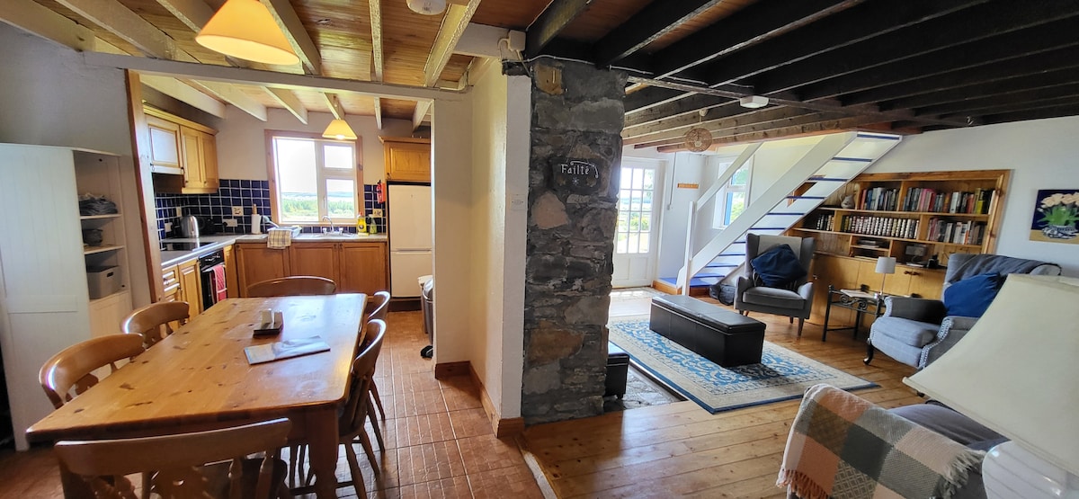 Dinql yarımadasındakı Böyük Bulanıq Adadan görünən dəniz mənzərələri. Möhtəşəm Qartal dağı 🦅 mənzərələri . Aydın gecələrdə ⭐️ görüləcək ay 🌓 və çəkiliş ulduzu! Bütün modifikasiyalar, peyzaj TV, airbnb, Dvd, Sürətli Wi-Fi, Aleksa ilə gözəl geniş lüks ev. Rayan 's Peak & Uzaq və Uzaq Məsafə üçün film məkanı. Ulduzlu Maykl Skellig-ə baxın təpədə gəzinti, balıq tutma, iriş musiqisi, pablar, yerli yemək və mədəniyyət Sadəcə istirahət edin və Atlantik okeanının mənzərələrindən zövq alın!