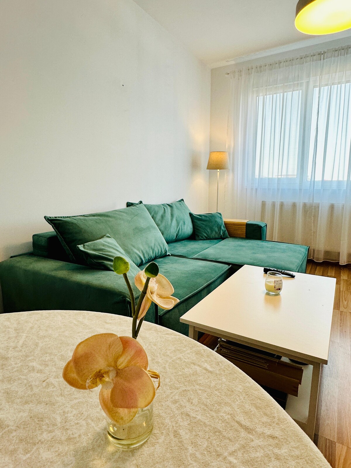 Kick back and relax in this calm, stylish space, with a comfy vibe, fully equipped kitchen, elegant bathroom, and private balcony. Located on Biruinței Street no. 87, at only 200m from the subway station “Berceni”. Perfect for couples or business travelers. Fast Wi-Fi, 2x AC, 2x TV, free underground parking, netflix, youtube premium, coffee, PS4, and all the comfort you need for a relaxing stay. Near the complex you have gym, shops, restaurants, playground, fast-food and soon a pool