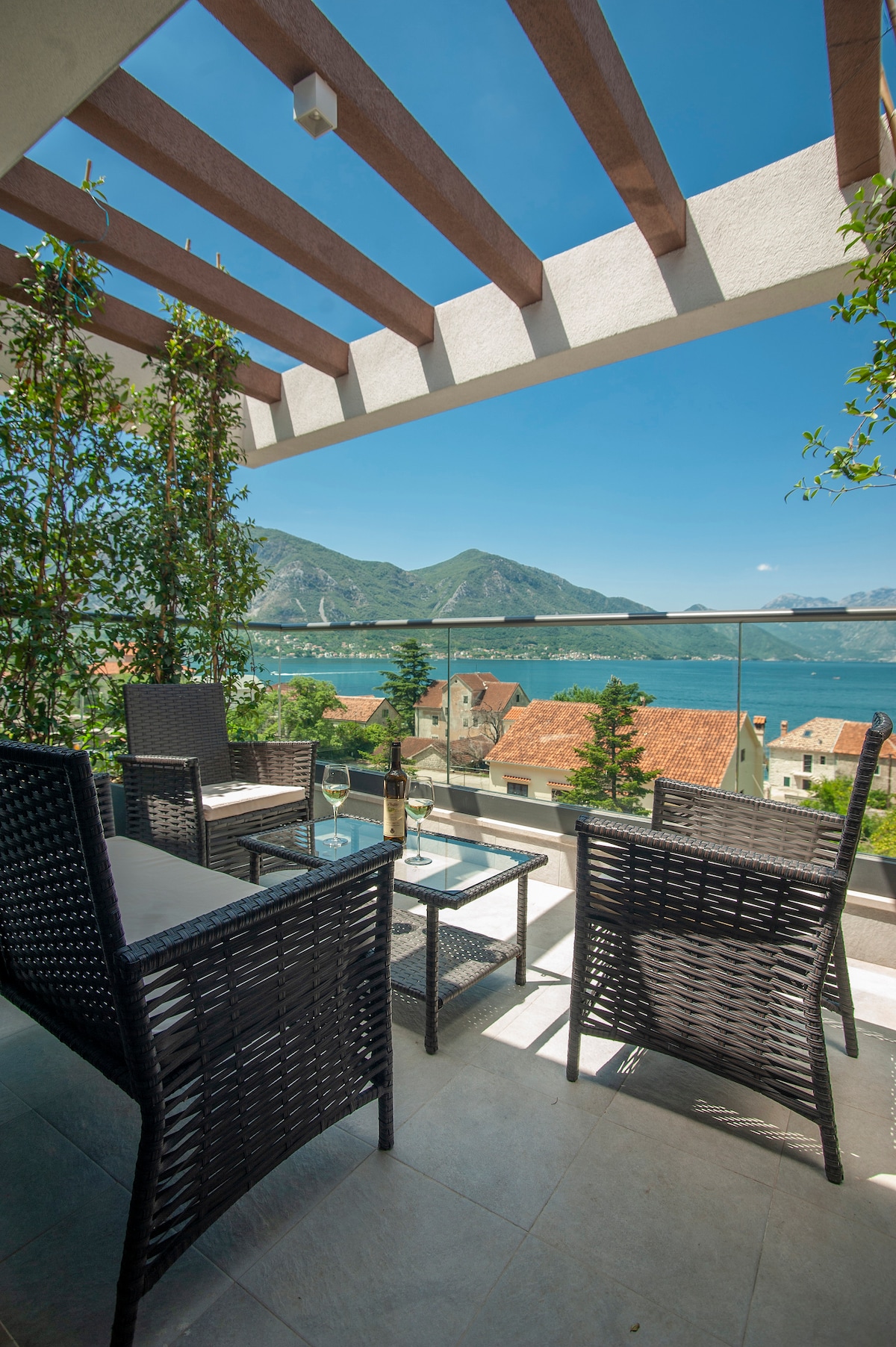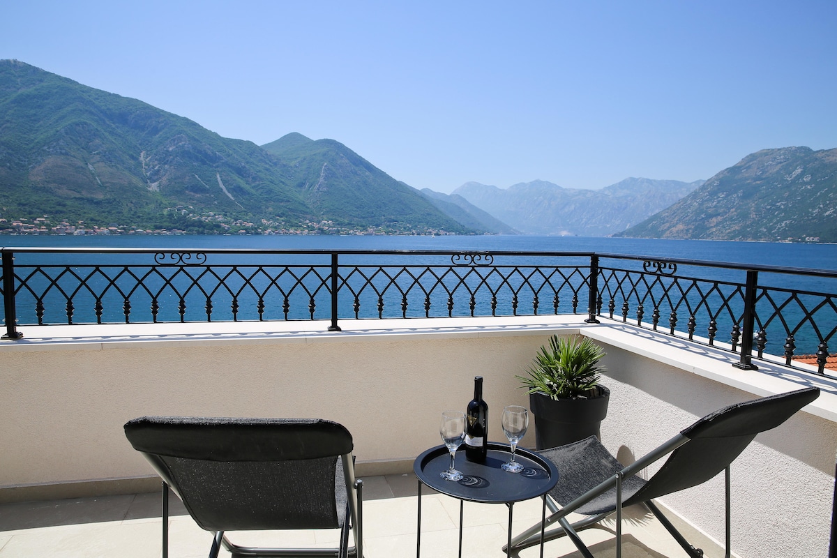 Penthouse overlooking Kotor Bay with hot tub