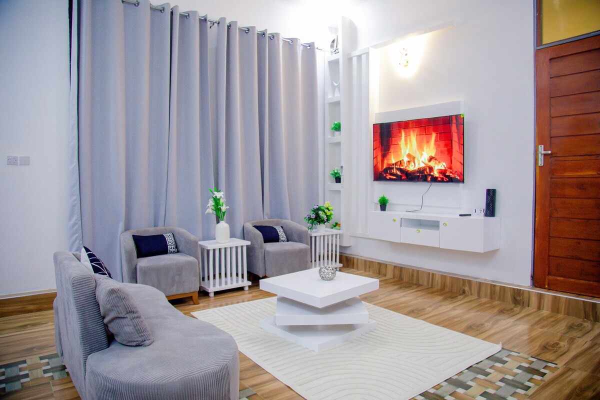 Tanzanziyanın canlı paytaxtı Dodomadakı evinizə xoş gəlmişsiniz. • Rahat qonaq otağı və tam mətbəxi olan müasir bir yataq otaqlı ev. •SGR stansiyasına 12 km-dən az məsafədə, İdealdır: İşgüzar səyahətçilər, dövlət rəsmiləri və Dodomada rahatlıq və rahatlıq axtaran qonaqlar. • Əsas hökumət idarələri və şəhər turistik yerlərinə yaxındır. • Sürətli Wi-Fi, Netflix, DStv və əyləncəli oyun gecələri ilə dinc bir məkan. • Pulsuz parkinq və öz-özünə giriş. Dodomanın məşhur səmimi qonaqpərvərliyini yaşayın
