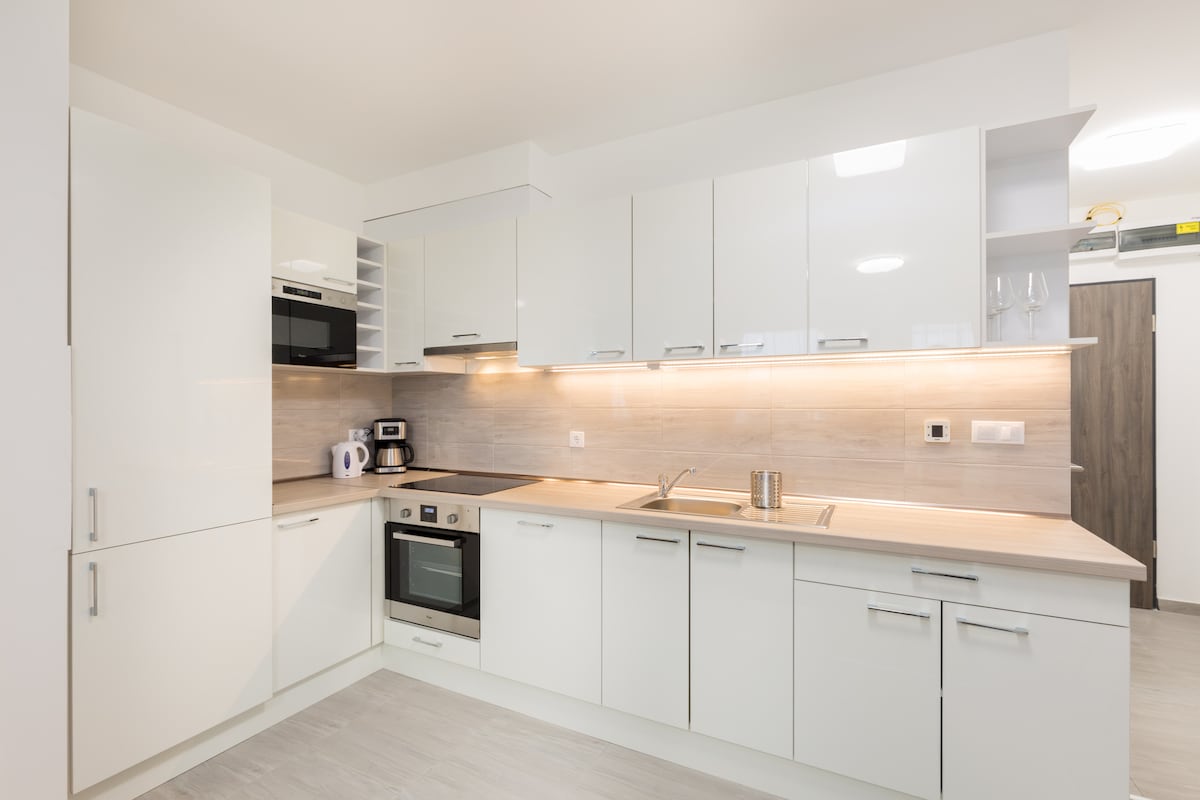 Ez a 79 négyzetméteres, légies elrendezésű apartman ideális választás családoknak vagy baráti társaságoknak. Két különálló hálószoba franciaággyal, valamint egy nappaliban elhelyezett kihúzható kanapéágy gondoskodik a kényelemről, így az apartman legfeljebb 4 fő számára biztosít kényelmes szállást. A lakás saját fürdőszobával, teljesen felszerelt konyhával, étkezőrésszel, síkképernyős TV-vel, valamint inygenes Wi-Fi-vel rendelkezik. Kisgyermekkel érkezők számára kérésre kiságy is biztosítható.