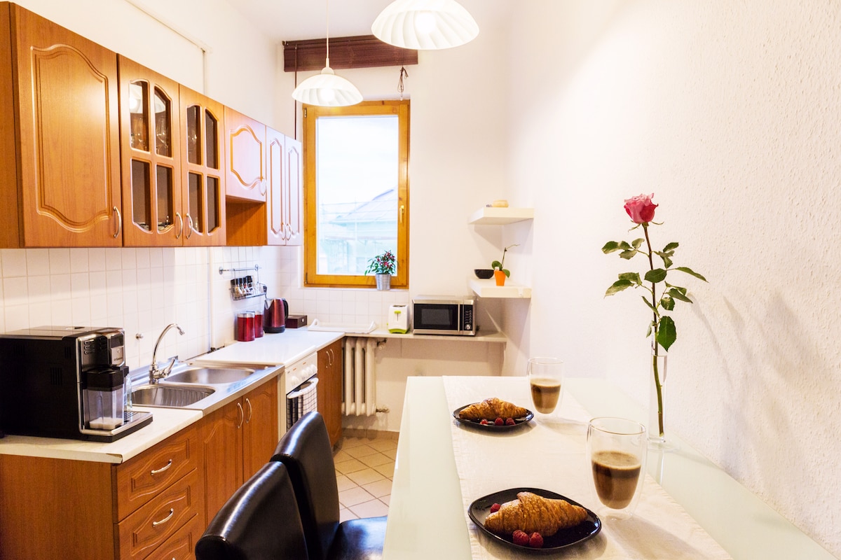 Səmimi mətbəx guşəsində parlaq şəhər oazisində cəld qəlyanaltı hazırlayın, sonra isə araşdırmağa başlayın. İsti taxta və mat ağ örtüklər məkana işıqlı, müasir təsir bağışlayır. Daha çox məhsuldarlıq üçün peşəkar ekran və simsiz şarj cihazı ilə təchiz edilmiş rahat iş sahəsi təmin edirik. (23,8" Dell P2422H Professional) Bütün gün ərzində qoşulmağınızı təmin etmək üçün Wi-Fi-a sürətli və etibarlı giriş imkanı mövcuddur. 500 Mb/s iş və istirahəti balanslaşdırmağa çalışan rəqəmsal köçərilər və uzaqdan işləyən işçilər üçün idealdır