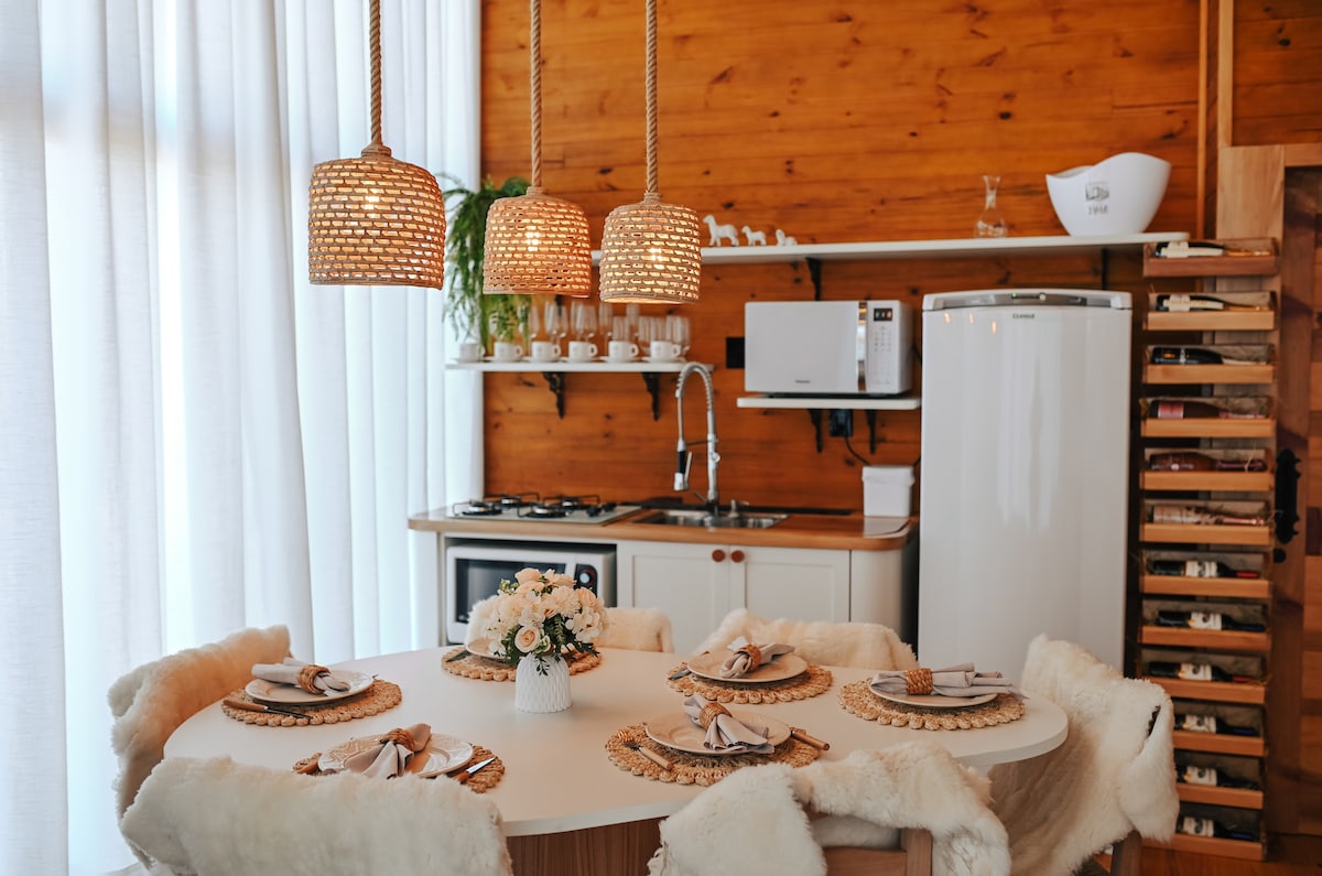 Chalé Videiras əmlakın ən yüksək hissəsində yerləşir, qonaqlama yerində cakuzi və bir çox rahatlıq var, mövzusu üzüm və şərablarla əlaqəlidir. Bu dağ evi unikaldır və öz üslubu var.
