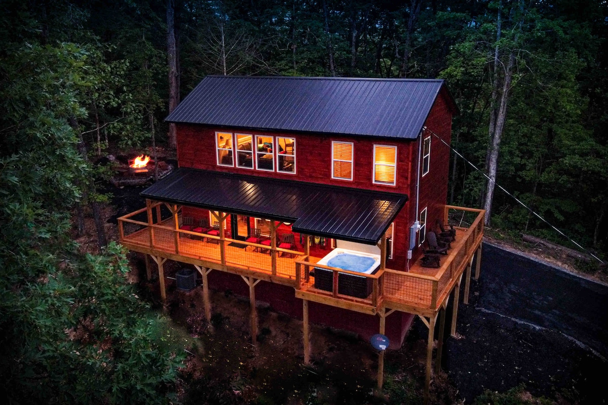 Bu kabinənin niyə Airbnb-də ən yaxşı 5% olduğuna baxın. Möhtəşəm, parka və Adaya 1 mil məsafədə! Rahat bir gecə üçün 2 geniş Kral Master Suitası. 2 tam ayrıca hamam otağı, şpal divanı, sauna, cakuzi, oyun otağı və yanğın çuxuru! İmkanlar ÇOXDUR. Ayrıca balkona açılan 1 səviyyəli, 3 dəst fransız qapısını sevəcəksiniz. Vadi mənzərəli ön eyvanda dincəlin və ya böyük arxa həyətdəki məkanda cakuzidən zövq alın. Yaşayış məkanında hündür tavanlar və istirahət üçün rahat buxarı var.