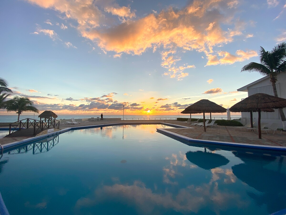 Bu yaxınlarda təmir edilmiş bu mənzildə Okean və Hovuz ərazisinə heyrətamiz mənzərə açılır. İki 150-179 sm ölçülü çarpayısı və bütün vacibləri olan balaca mətbəxi var (Portativ sobanın üstü, Mikrodalğalı soba, Damla qəhvə maşını və s.) Yaxşı internetimiz və çox gözəl balkonumuz var. Pulsuz mühafizə olunan parkinq. Hava limanından 17 dəq məsafədəyik. Kondonun böyük hovuzu var, böyük uşaq sahəsi, çimərlik salonu stulları, çimərlikdə restoran, rahat mağaza və sikkə camaşırxanası var. Kankun Plazada yerləşir.