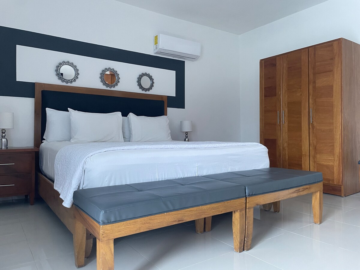 Wake up to breathtaking Caribbean sea views in this modern penthouse suite located inside Hotel Neptuno Refugio, just steps from Boca Chica’s famous turquoise waters. Designed for comfort and style, the penthouse features: 🌅 Private oceanview balcony perfect for sunsets and morning coffee 🛏️ Spacious king-size bed and cozy lounge area ❄️ Air conditioning, fast Wi-Fi & Smart TV with Netflix 🍸 Mini bar and kitchenette with essentials 🧖♂️ Access to the hotel’s pool, bar & beach area